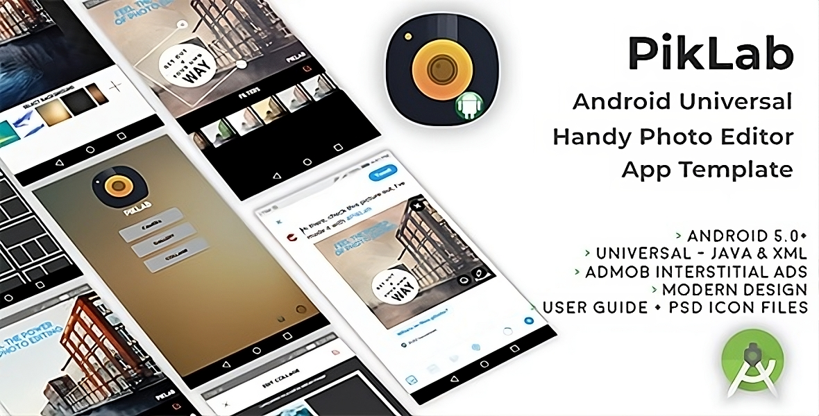 PikLab is easy to customize, Universal, native Android Studio project, Java/xml language